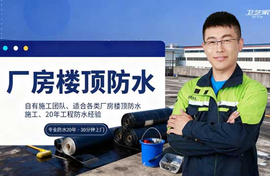 卫艺家防水,舟山厂房防水补漏,舟山厂房楼顶防水,舟山防水公司专业舟山地区各类防水补漏工程,正规公司,就近上门,快速解决各种防水维修问题!